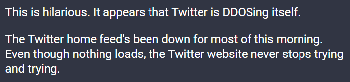 有网友更是发现,登录推特网页后,右边的滚动条在不停抖动,这是推特不断发出请求,试图阅读内容,但实际上却被限制的结果。可见,虽然限制已出,但是网页的更新还没有跟进到位,这对用户体验可谓是「火上浇油」呀。